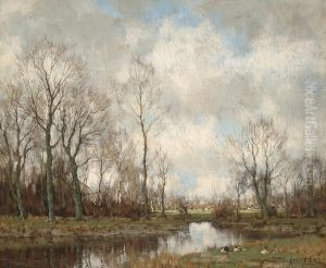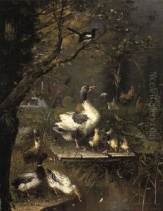 Eenden Met Kuikens Aan De Waterkant Oil Painting by David Adolph Constant Artz