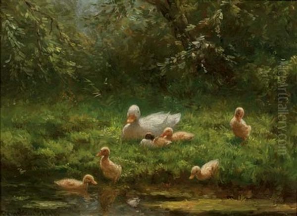 Mother Duck With Her Ducklings Oil Painting by David Adolph Constant Artz