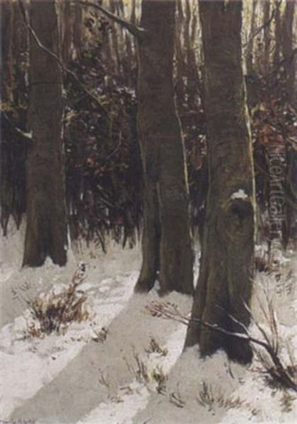 Trees In A Winter Landscape Oil Painting by David Adolph Constant Artz