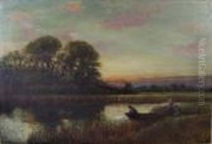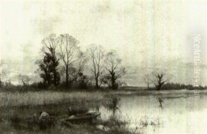 A Figure Gathering Fire-wood By A Lake