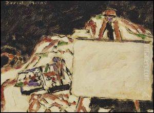 Paint Box, Easel And Canvas