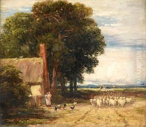 A Shepherd And His Flock By A Cottage