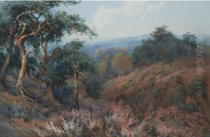 An Extensive Wooded Landscape With A Shepherd And Flock