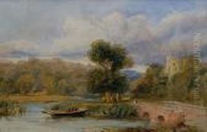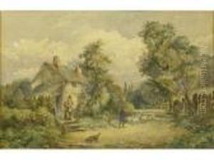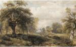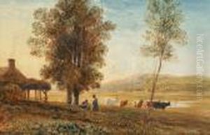 Figures And A Horse In An Extensive Landscape With A View Of Achurch Beyond; And Figures On A Lane With Cattle Grazingbeyond