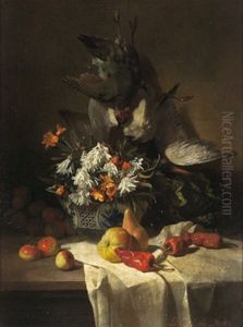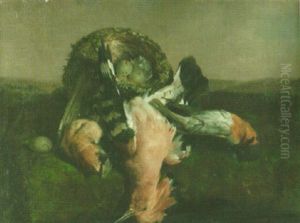 Stilleben Mit Erlegten Vogeln, Radieschen, Bluten Und Salatkopf