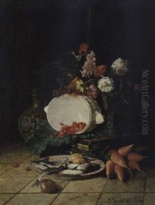 Stilleben Mit Blumen, Fruchten Und Fisch