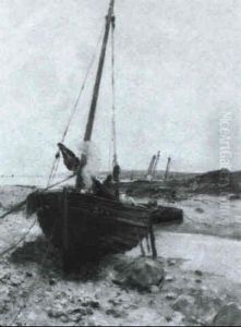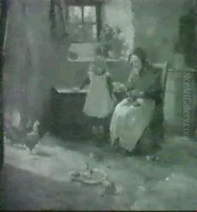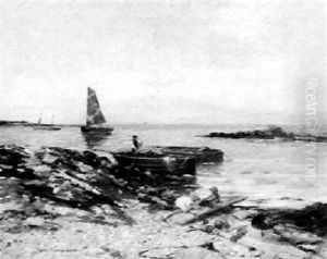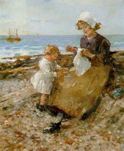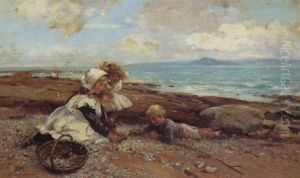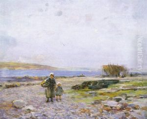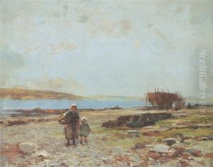 Scottish Coastal Scene With Fishergirl And Other Figures