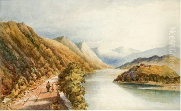 Man And Child On A Lakeside Path
