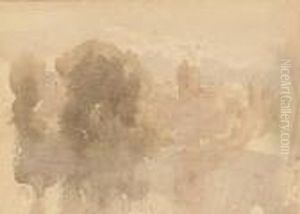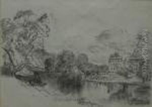 Cox, British , The Gardens At Stourhead, Gallery Label On Verso, Pencil,14 X 23cm.; 5.5 X 9in