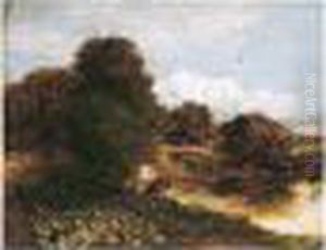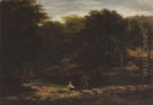 Landscape With A Figure Sawing Wood Beneath A Tree