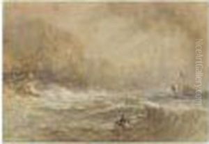 A Craggy Shore; Lampeter Church; And A Cottage By A Stream, Wales(?) (illustrated)