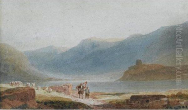 A Man With A Harp And His Son Near Dolbadern Castle, Llanberis