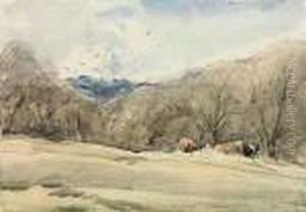 A Wooded Landscape With Cattle On A Sloping Bank