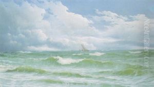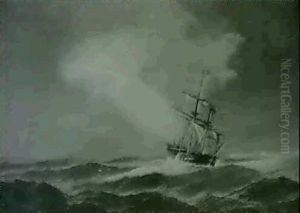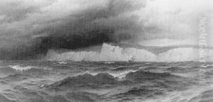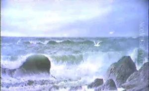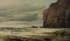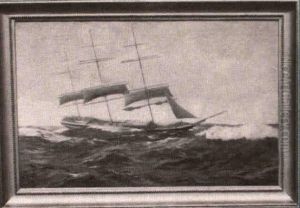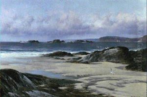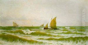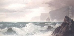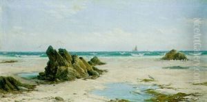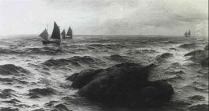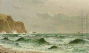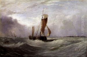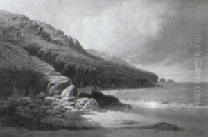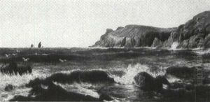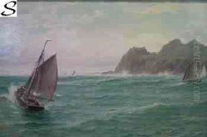 Gaffed Rigged Sailboat Along A Rocky Coastline