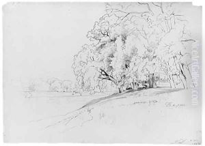Johnson's work is characterized by its meticulousness and attention to detail, especially in his portrayal of foliage and natural elements. His use of light and shadow is also noteworthy, contributing to the tranquil and often idyllic quality of his scenes. Unlike some of his contemporaries who depicted grand, sweeping vistas, Johnson preferred to focus on more intimate and serene settings.