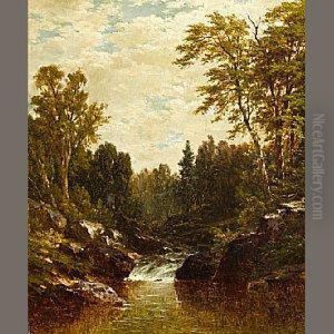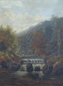 River Landscape With Waterfall