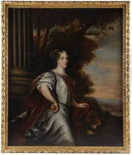 Portratt Av Drottning Kristina Kladd I Romersk Drakt Med Vinrod Mantel