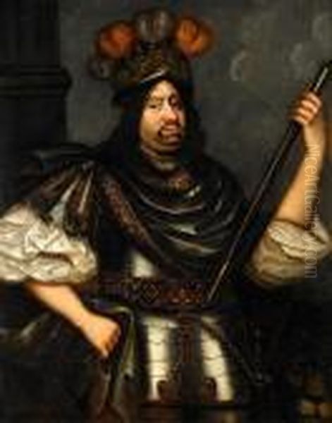 Portratt Av Karl X Gustav Som Romersk Harforare Med Lagerkransad Hjalm Och Marskalkstav - Knastycke