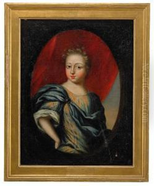 Portratt Av Karl Xii Som Barn Kladd I Bla Mantel - Midjebild Mot Rod Draperifond