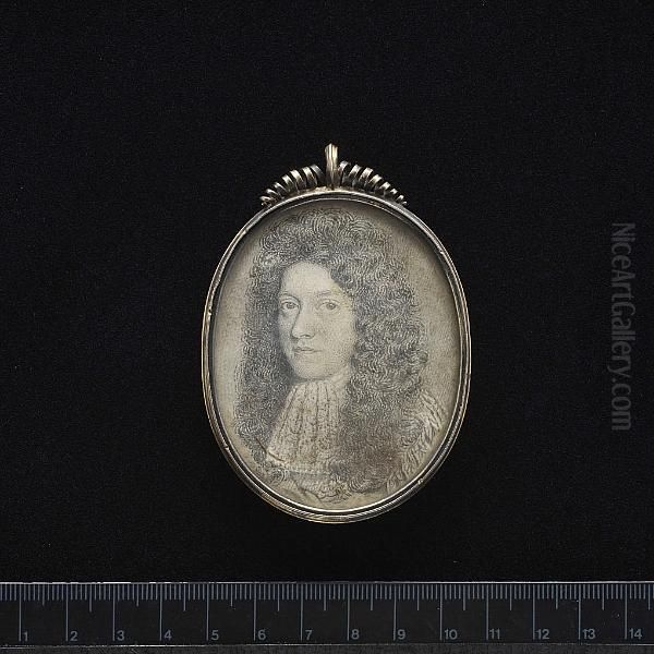 A Gentleman, Wearing Lace Cravat And Embroidered Coat, His Hair Curled And Worn Long.