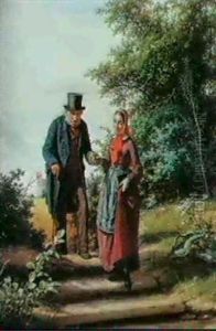 En Bondepige Leder En Gammel Mand Fra Kirken
