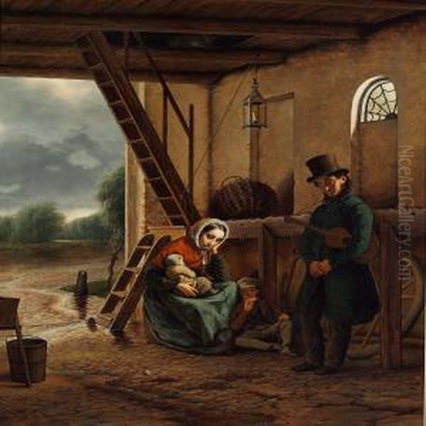 A Wandering Troubadour And His Family Seeking Shelter From The Rain
