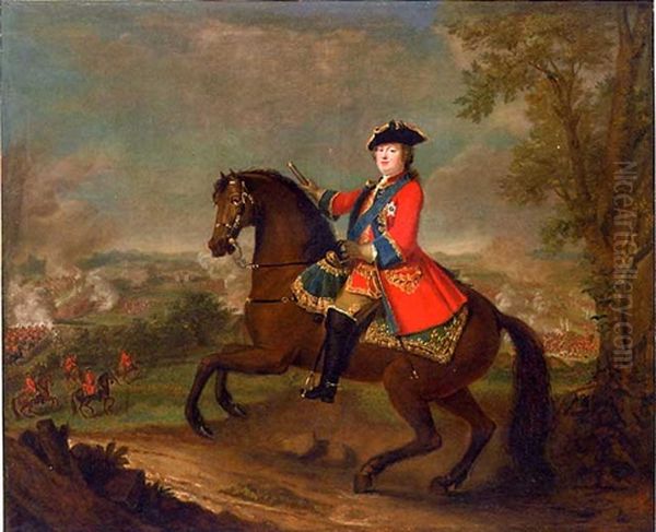 H.r.h. William Augustus, Duke Of Cumberland, On Horseback, Wearing Frock Uniform Of The First Guards With The Ribbon And Star Of The Garter, Holding A Baton, A View To The Battle Of Culloden Beyond