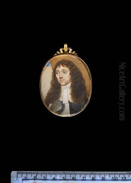Sir William Bastard, Wearing Gilt-studded Armour And White Lace Cravat, His Hair Curled And Worn Long.