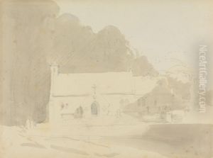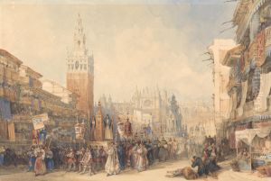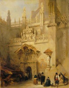 A Group Of Nuns And Townspeople In Front Of An Old Abbey