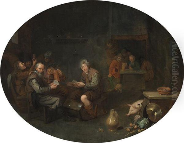 A Tavern Interior With Men Playing Cards