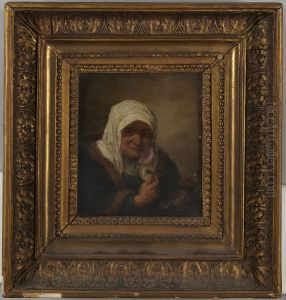 An Old Peasant caresses a Kitchen Maid in a Stable
