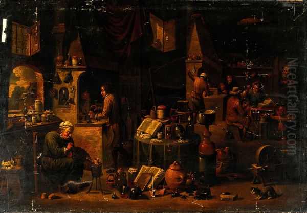 An alchemist in his laboratory. Oil Painting by David Teniers the Younger