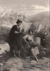 A Barn Interior With A Man Courting A Maid, And A Peasant Woman Peeking Around A Corner In The Background