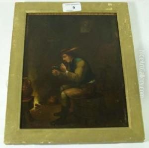 Labourer Smoking A Pipe With A Bell At His Feet