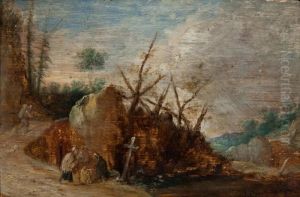 Panoramalandschaft Mit Schlossanlage Und Staffagefiguren