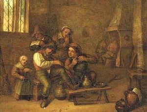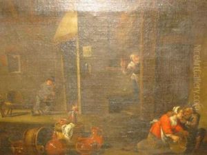 Interior With A Peasant Smoking A Pipe Before A Fireplace