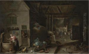 Interior Of A Farmhouse With Figures And Animals