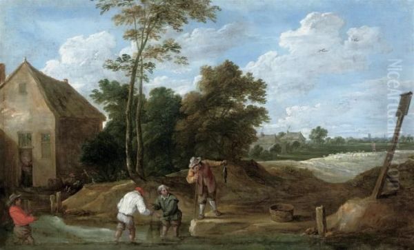 Bring the timeless beauty of David The Younger Teniers's Peasants Fishing In A Stream By A Cottage into your home with a handmade oil painting reproduction. Carefully recreated on canvas by skilled artists using traditional techniques, this piece captures the delicate brushwork, subtle light, and vibrant color of the original masterpiece. With museum-level quality and rich texture, it brings elegance and artistic depth to any space. Enjoy free shipping and make this masterpiece a part of your personal collection.