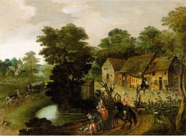 A Village Scene With A Hunting Party In The Foreground