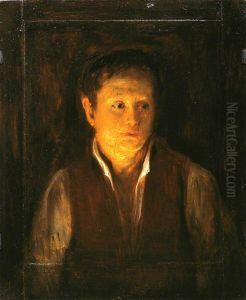 A Child Resting His Cheek on His Hand, Head and Shoulders