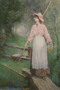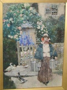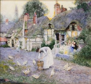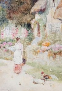 A Lady Peeling Apples; Feeding The Geese, A Pair