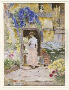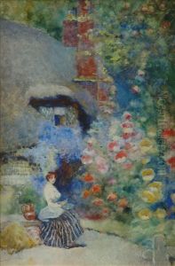 A Lady Seated In The Rector's Garden, Signed And Inscribed 'the Rector's Garden, Chegwall, Cheshire'