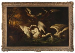 A Landscape With Ducks Attacked By Two Springer Spaniels And A Buzzard