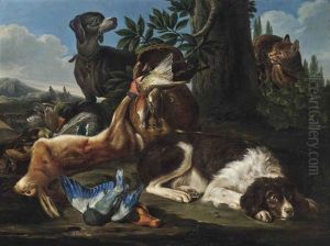 A Hare And Game Birds With Three Dogs, A Landscape Beyond