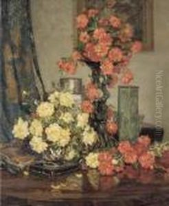 Roses, Signed, Oil On Canvas, 61 By 51 Cm., 24 By 20 In