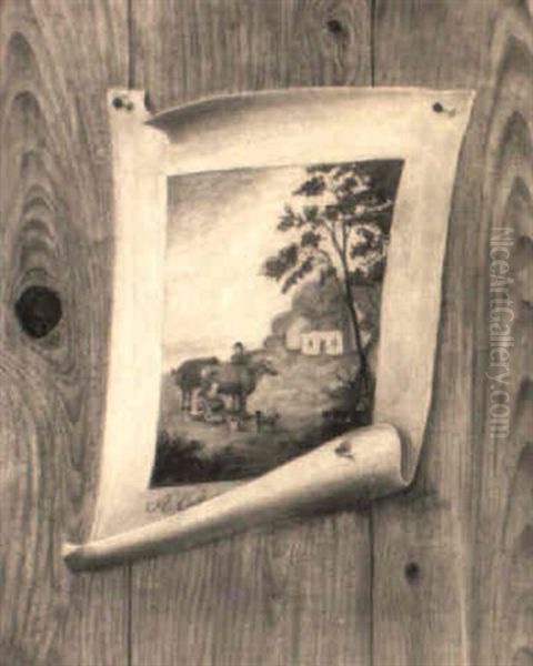 A Tromp L'oeil Of A Print Pinned To A Wooden Wall