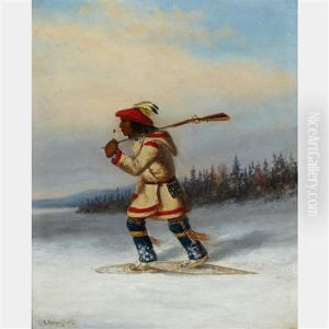 Indian Hunter On Snowshoes