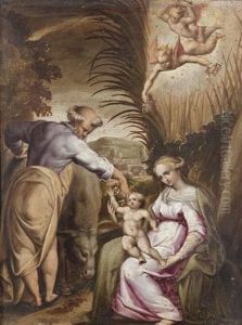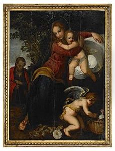 Die Heilige Familie Mit Dem Johannesknaben Und Einem Engel Mit Blumen