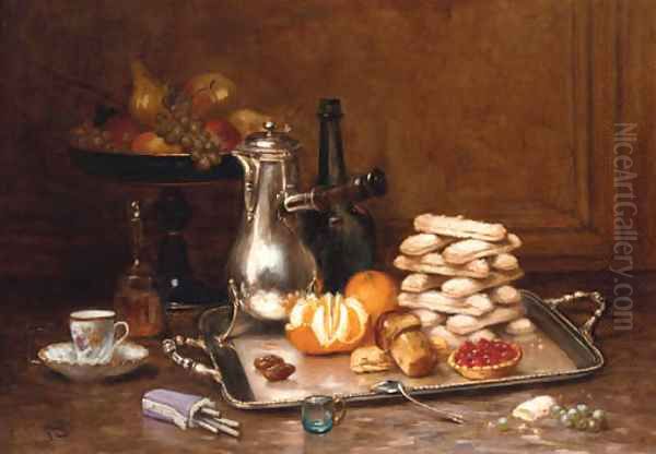 Bring the timeless beauty of Desire Alfred Magne's A coffee-pot, a peeled orange, a stack of meringues and a fruit tart on a silver tray into your home with a handmade oil painting reproduction. Carefully recreated on canvas by skilled artists using traditional techniques, this piece captures the delicate brushwork, subtle light, and vibrant color of the original masterpiece. With museum-level quality and rich texture, it brings elegance and artistic depth to any space. Enjoy free shipping and make this masterpiece a part of your personal collection.