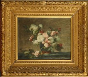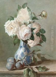 Nature Morte Aux Roses Blanches Dans Un Vase De Delft